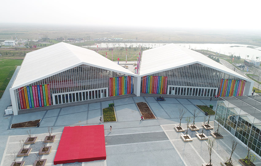 高山企業制作新型篷房、氣膜建筑產品,部件在工廠加工完成,運到現場組裝即可,方便快速,避免了現場噪音、垃圾、建筑的二次污染。高山集團公司為防污制霾、碧水藍天,提供更多的選擇。