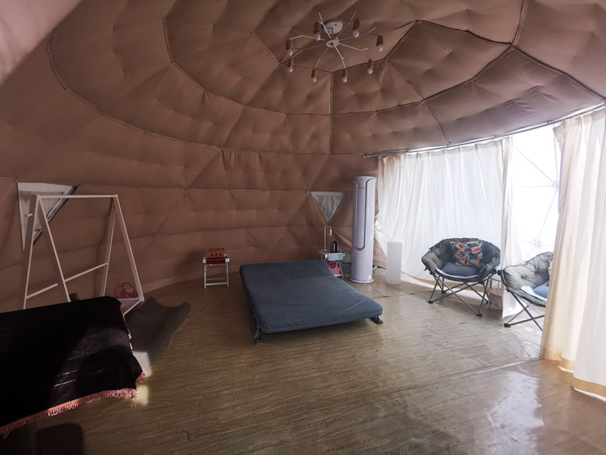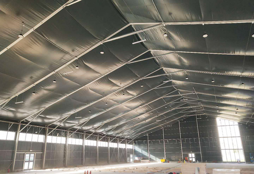 篷房和氣膜建筑的保溫材料可選用巖棉與玻璃絲綿,采用專用機械設備加工成保溫成品,防火等級達到A類。傳統建筑使用彩鋼瓦中間夾棉,現選用PVDF膜材與保溫棉相結合,增加了氣密性,耐酸耐堿耐腐蝕。