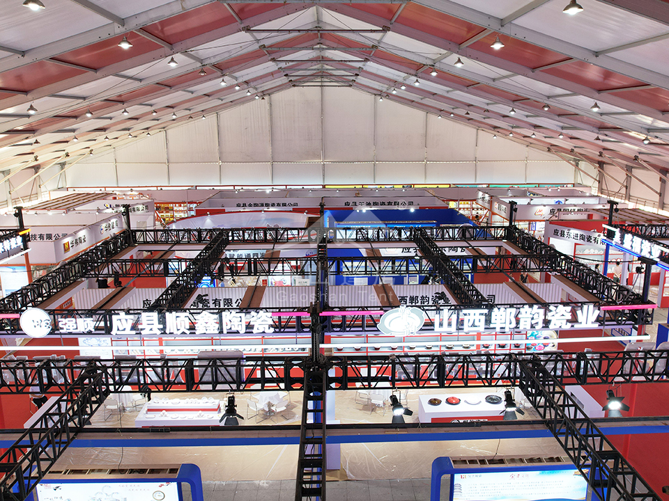 篷房內部空間開闊,占地達數千平方米,為來自朔州本地及國內外的陶瓷企業提供了完美的展示平臺。參展商紛紛展示各自的精品力作,包括日用瓷、建筑瓷、工藝瓷等多元化產品。