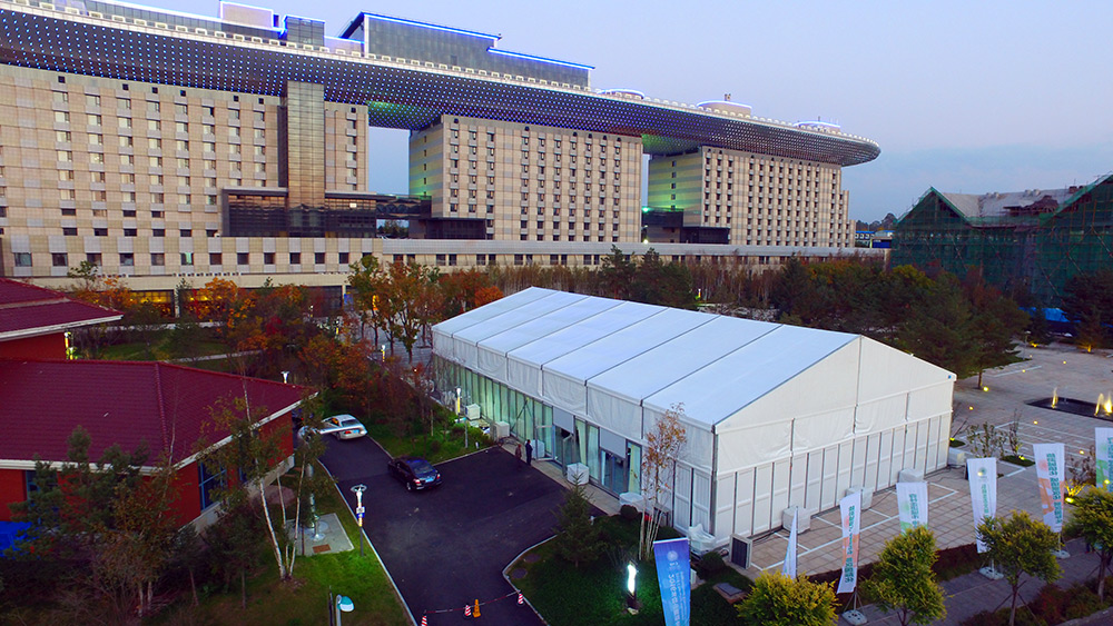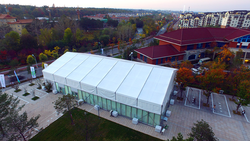 也可以采用篷房與固定建筑相結(jié)合的方式,通過使用篷房,解決現(xiàn)有空間不足的問題。例如篷房出入口,來賓通道,附屬?gòu)N房,化妝室等場(chǎng)景。