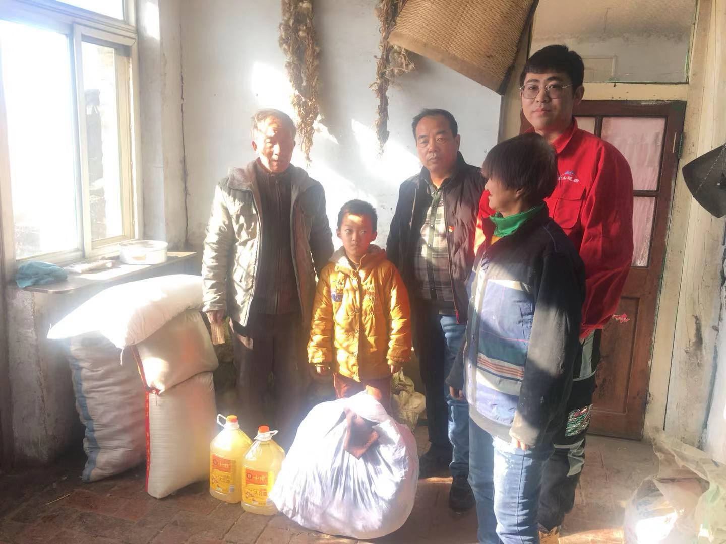 臨近年終歲末,高山篷房董事長組織員工來到遼中區老觀坨村,在村支書的引領下前去看望貧困家庭武春江一家,為他們送去了食用油、面粉、大米、衣物等生活用品,幫助他們溫暖過冬,安心過節。